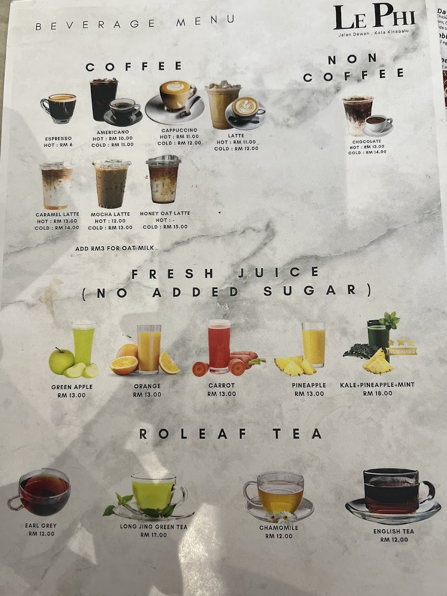 Le Phi Cafe Menu
